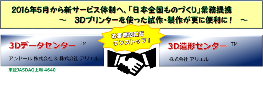 ※ 3D造形センター® は、弊)株式会社アリエルの登録商標です。3Dデータセンター® は、弊)株式会社アリエルの登録商標です。